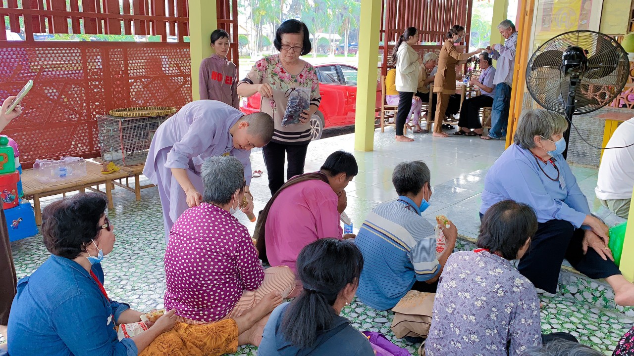 Tham dự buổi trao quà có: Sư cô Thích nữ Diệu Sơn – Trụ trì Chùa Từ Huệ ( tỉnh Bình Dương ); Sư cô Thích nữ Huệ Nghiêm – Phó ban Hướng dẫn Phật tử GHPGVN tỉnh Long An; Sư cô Thích nữ Trung Hiếu – Trưởng ban Hướng dẫn Phật tử GHPGVN huyện Đức Hoà, Trụ trì chùa Tân Phước; Chư tôn đức Ni cùng quý mạnh thường quân, nam nữ Phật tử đạo tràng chùa Từ Huệ.