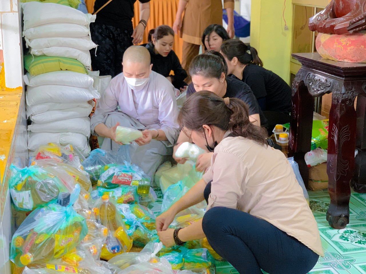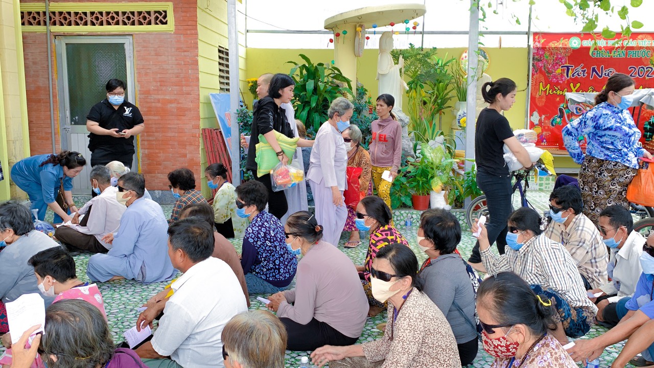 Được sự trợ duyên từ Sư cô Thích nữ Diệu Sơn – Chùa Từ Huệ ( tỉnh Bình Dương ) cùng quý mạnh thường quân, nam nữ Phật tử Chùa Tân Phước đã chuẩn bị những phần quà ý nghĩa trao đến bà con có hoàn cảnh đặc biệt nhằm lan toả yêu thương chia sẽ khó khăn đến những mảnh đời bất hạnh.