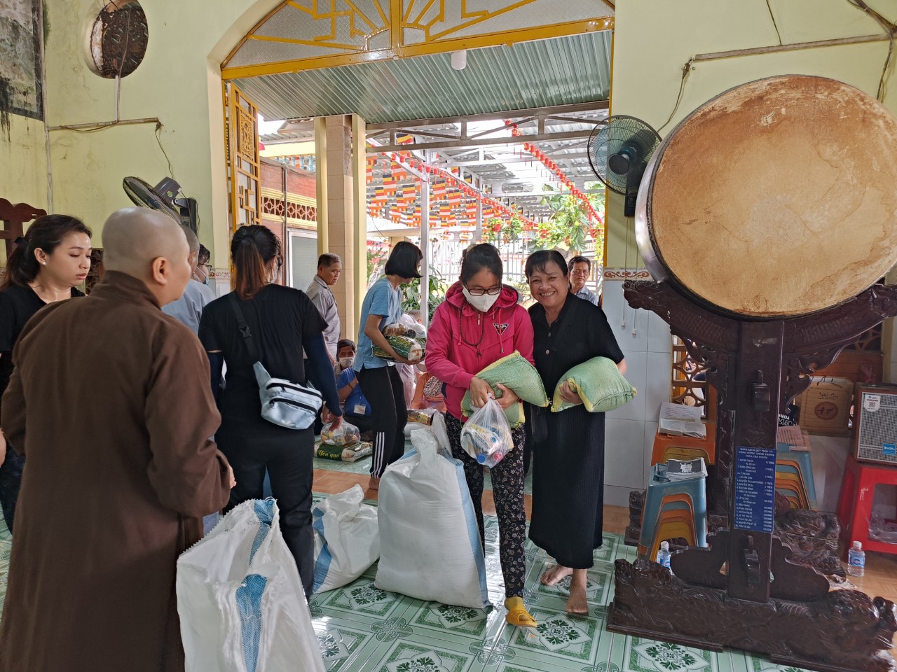Mỗi phần quà trị giá 400 ngàn đồng, ngoài các phần quà tặng bao gồm các vật phẩm thiết yếu như gạo, dầu ăn, nước tương và một số thực phẩm khác… còn có phần tịnh tài là 100 ngàn đồng được trao tận tay đến mọi người với tổng kinh phí là 48.000.000 đồng.